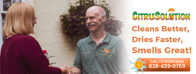 CitruSolution is the Asheville Carpet Cleaning Expert. We offer a revolutionary Eco-friendly cleaning process for your carpets, rugs, furniture, and even vehicle upholstery. The old style cleaning process uses lots of hot soapy water, that leaves a sticky residue behind to attract more dirt. Instead, CitruSolution of Asheville uses an amazingly powerful cleaning agent that is naturally made from citrus fruit peels, made right here in the USA. Our Asheville carpet cleaning, disinfecting, hardwood floor cleaning, and upholstery cleaning services are the highest rated of any service provider in Western North Carolina. It works so well that only a small amount cleans better than hundreds of gallons of soapy water. And, because CitruSolution of Asheville is a low moisture cleaning process, it dries in just a couple of hours rather than days.